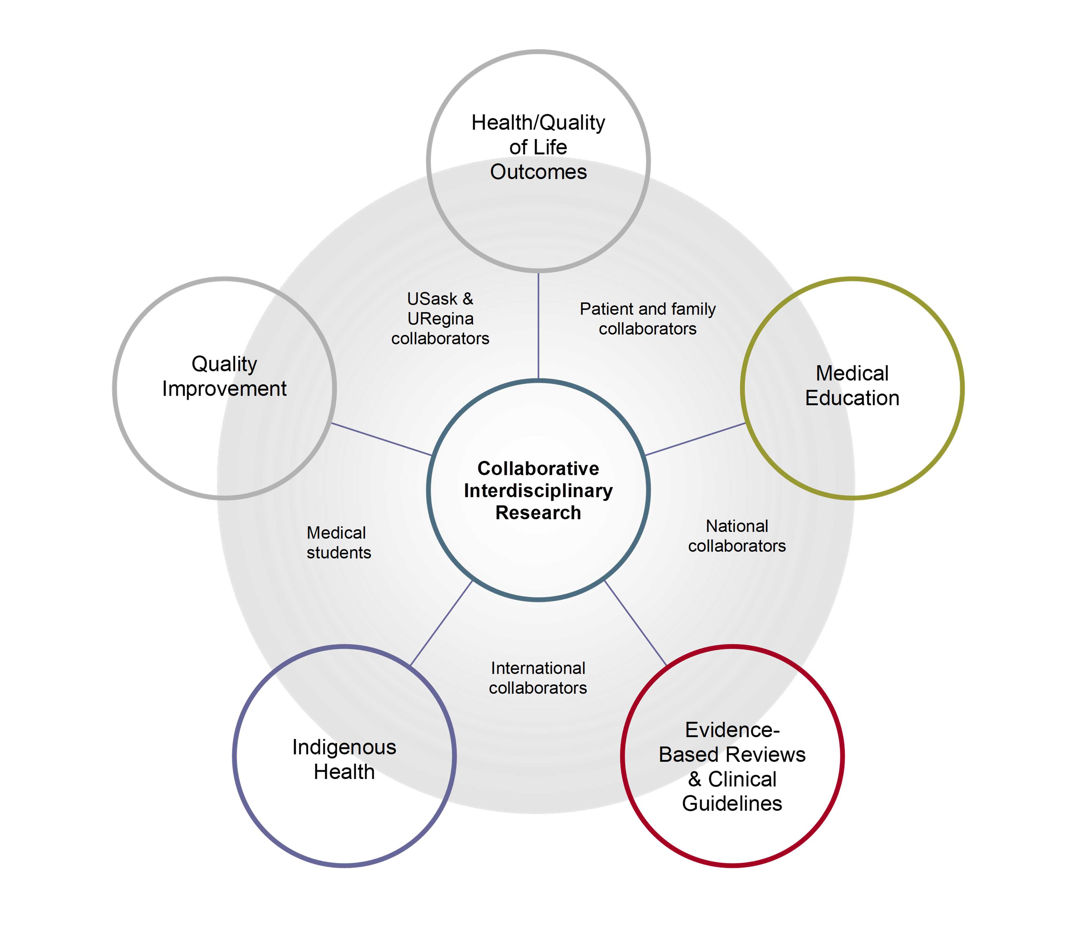 Physical Medicine and Rehabilitation is a collaborative field of practice. Accordingly, we conduct collaborative interdisciplinary research in health/quality-of-life outcomes, medical education, evidence-based reviews and clinical guidelines, Indigenous health, and healthcare quality improvement with patient and family partners, medical students, and local, national, and international researchers.