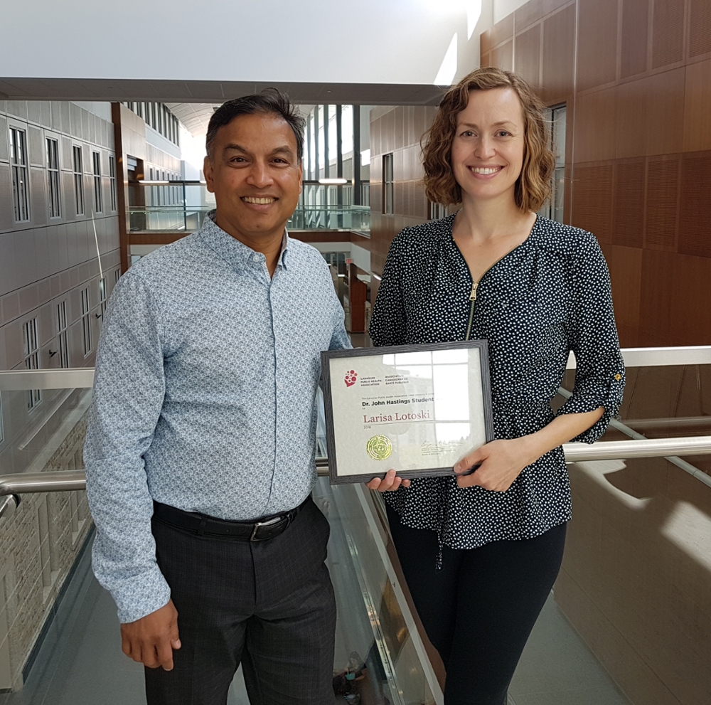 Lotoski, a PhD student in the U of S department of community health and epidemiology and in the Saskatchewan Population Health Evaluation and Research Unit, received the award last week at the CPHA’s annual conference. She presented her work in a three-minute presentation competition against nine other students with top-rated abstracts.