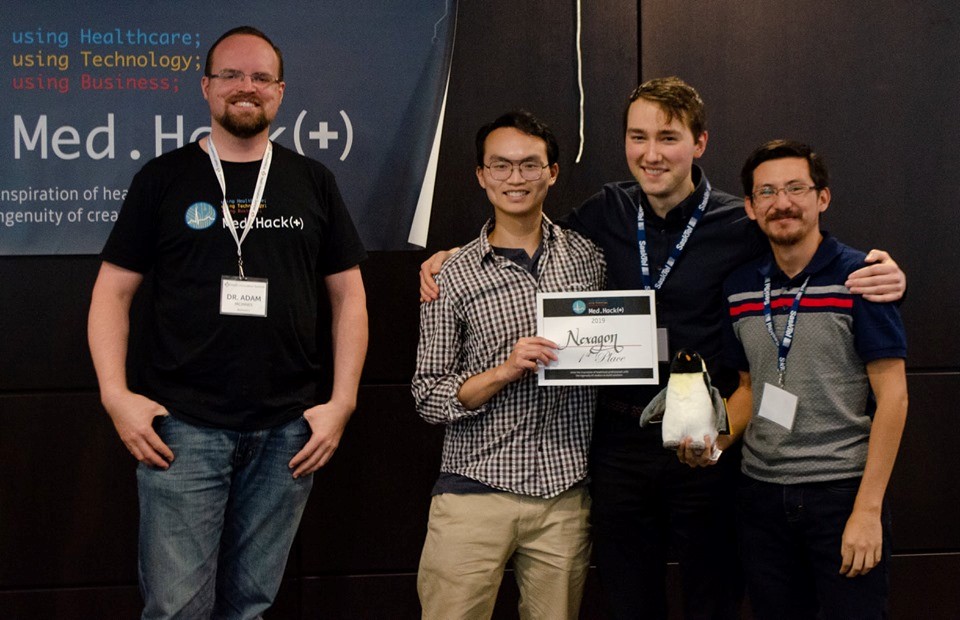 We placed first in the 2019 Med.Hack with our Nexagon invention based on the judges’ decision on who had the best invention out of the competing groups. In addition, we also won the First Penguin Award which was given to the group who tried to tackle a problem using an innovative approach.