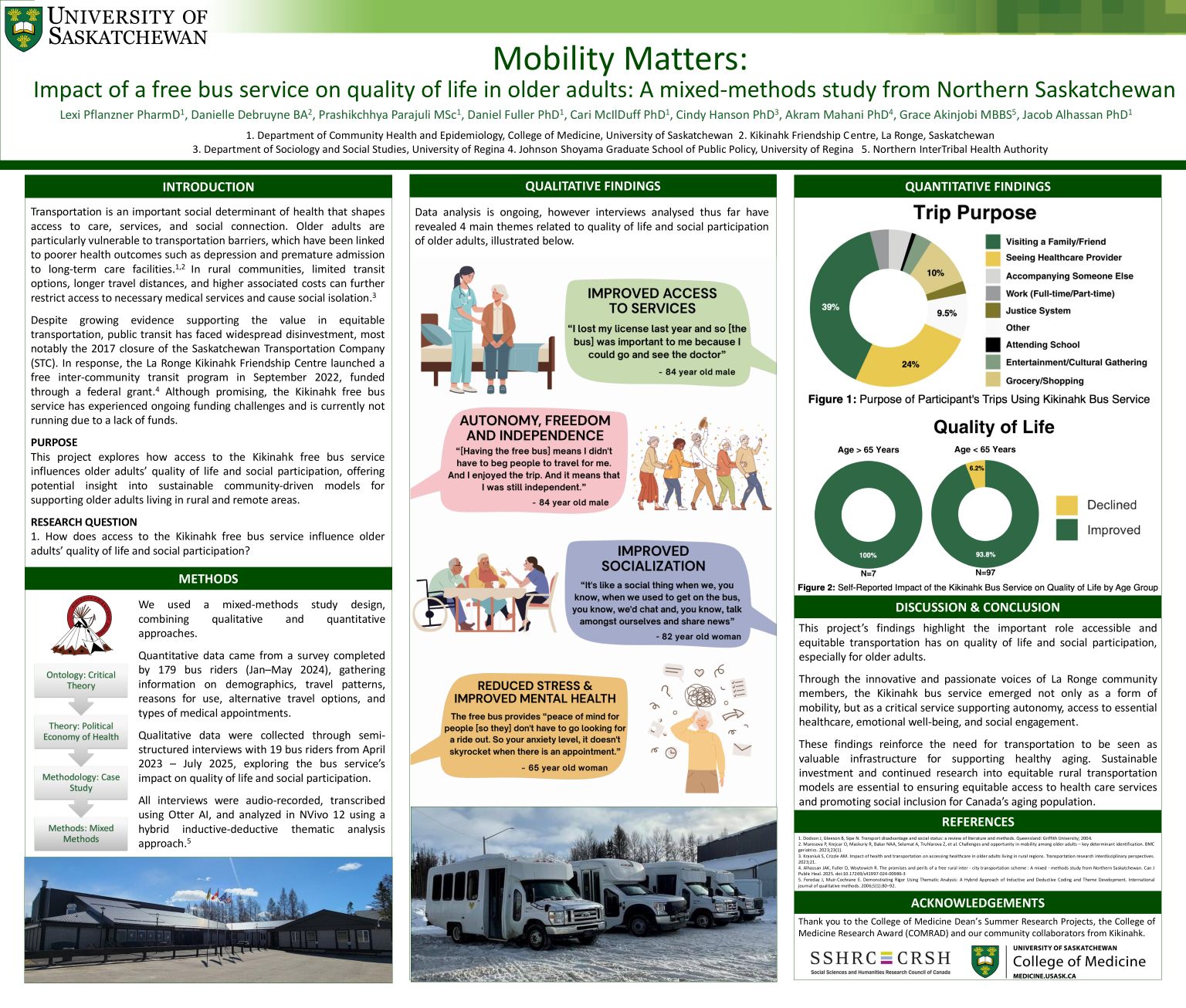Mobility Matters: Impact of a free bus service on quality of life in older adults: A mixed-methods study from Northern Saskatchewan