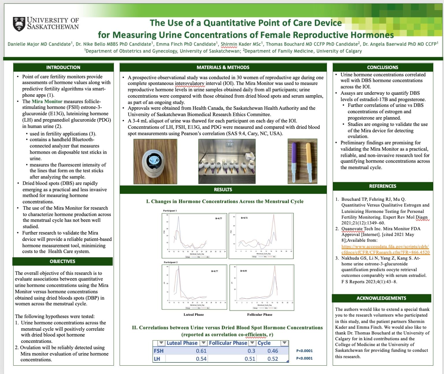 Conclusions: Further research to correlate urine vs DBS concentrations of estrogen and progesterone are ongoing. Preliminary findings are promising for validating the Mira Monitor as a practical, reliable, and non-invasive research tool for quantifying hormone concentrations across the menstrual cycle.