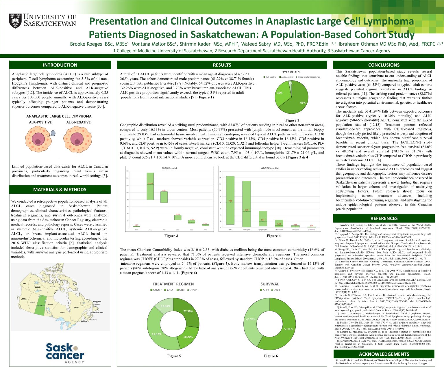 Methods: We conducted a retrospective population-based analysis of ALCL cases diagnosed in Saskatchewan, analyzing patient demographics, clinical characteristics, pathology, treatments, and survival.