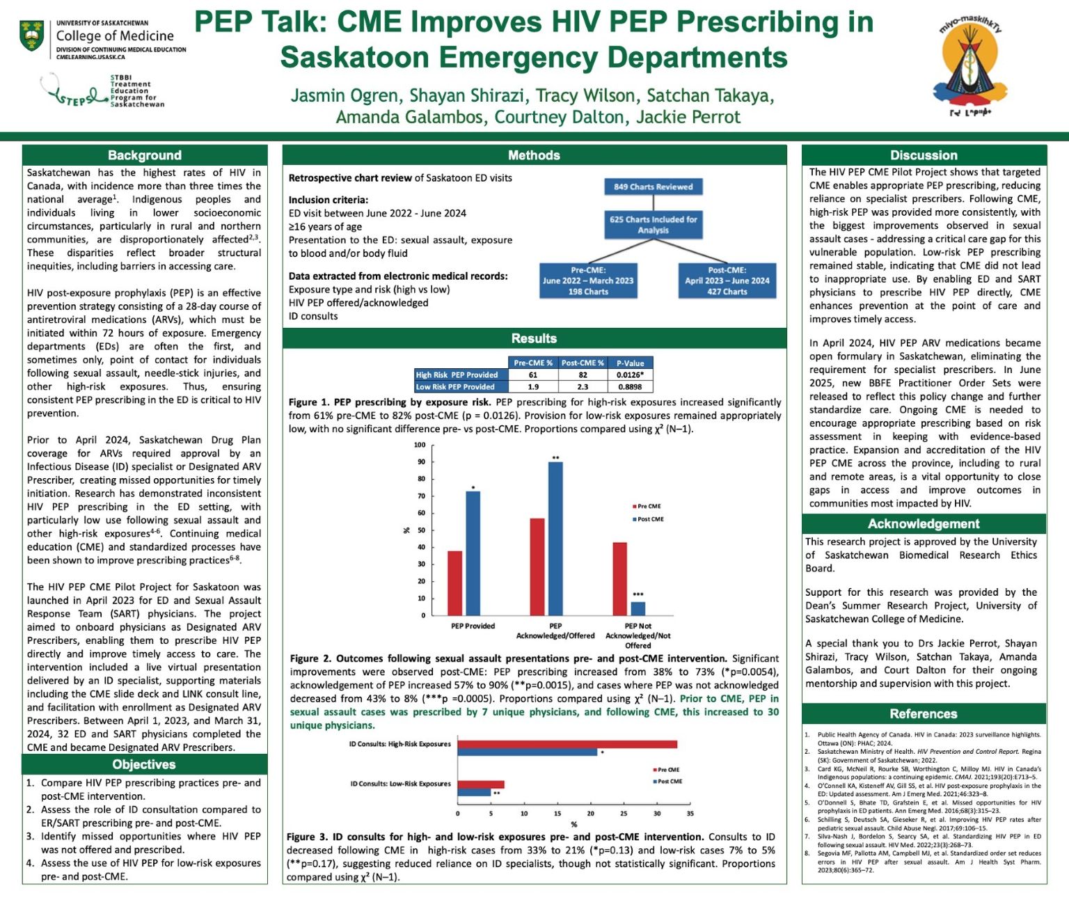 HIV Post Exposure Prophylaxis (PEP) Prescribing in Saskatoon Emergency Departments: Pre and Post CME Intervention